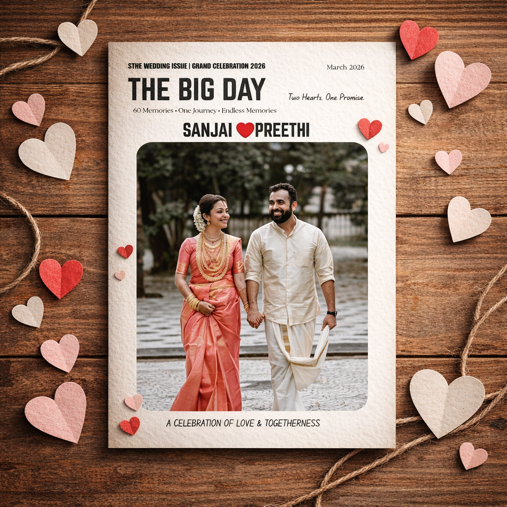 Create a stunning anniversary photo magazine to preserve your love story with beautiful photos, elegant design, and lasting memories.