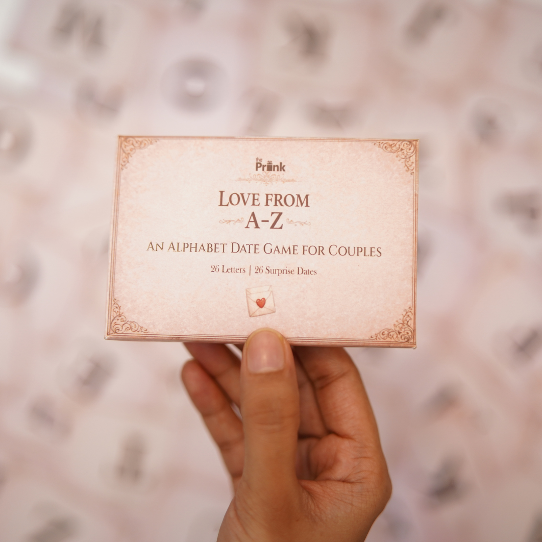 Twenty-six envelopes. Twenty-six surprises. One for every letter of the alphabet. Love from A-Z is a couple date kit built on the simple joy of not knowing what comes next—pick a letter, open the envelope, and discover a date designed for exactly that mood. From A all the way to Z.