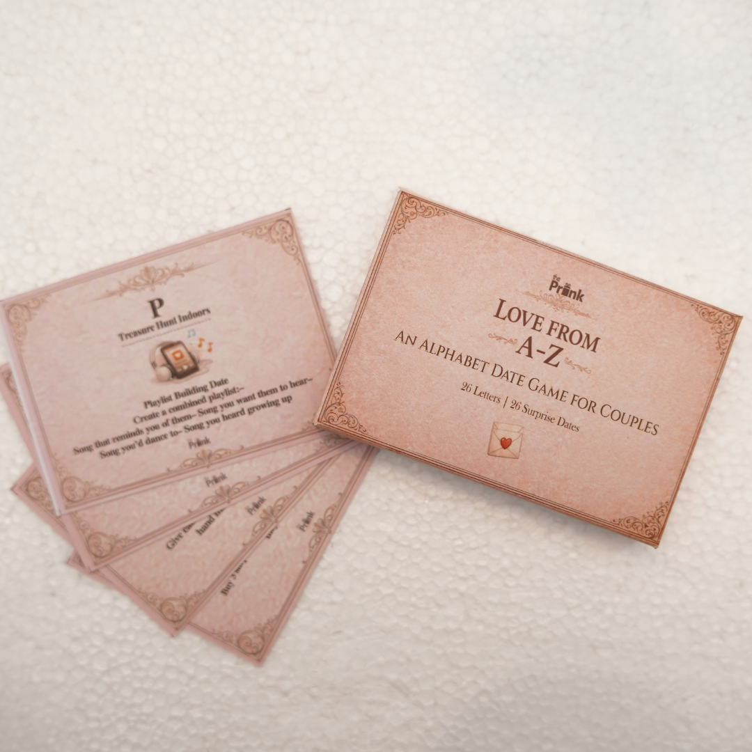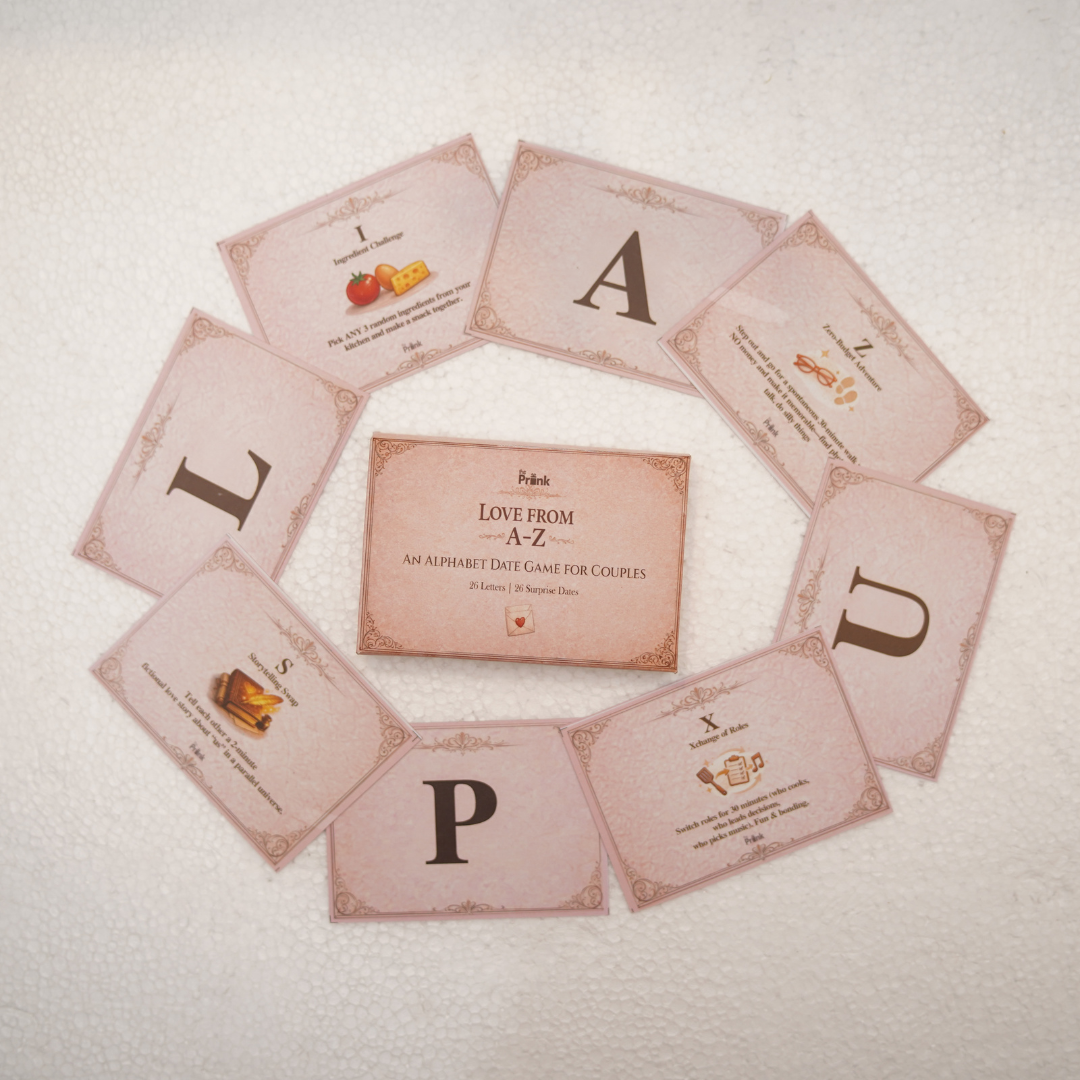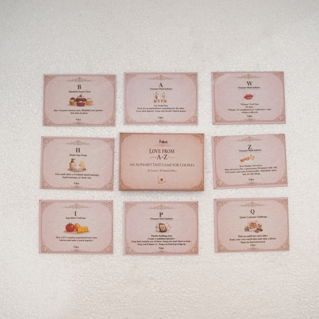 Each envelope is sealed and only opened once—no reading ahead, no spoilers. The letter you choose controls the reveal. The dates inside span the full range: creative and playful, intimate and slow, laugh-out-loud and quietly meaningful. All 26, entirely yours.
