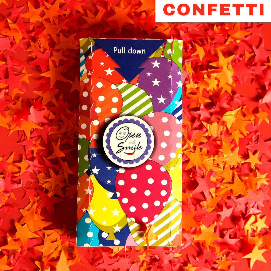 - When opened, cube pops out with the blast of confetti to smack your face.